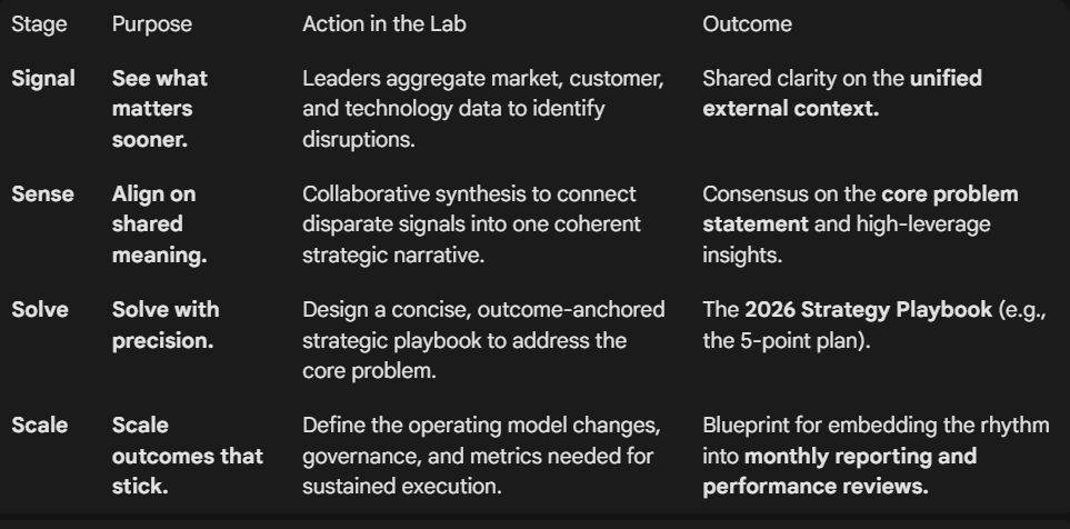 The ultimate value of the Lab is giving you the tools to stop acting on “solo speculation” and start steering continuous innovation based on “signal/sense synthesis.”